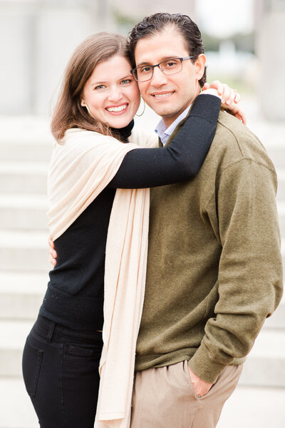 Generally, couples pick two outfits for an engagement session: a more formal outfit and a casual outfit. We recommend saving your favorite outfit for later in the session, when couples usually feel more comfortable in front of the camera. Here's a link to my Pinterest board to help give you some outfit ideas: